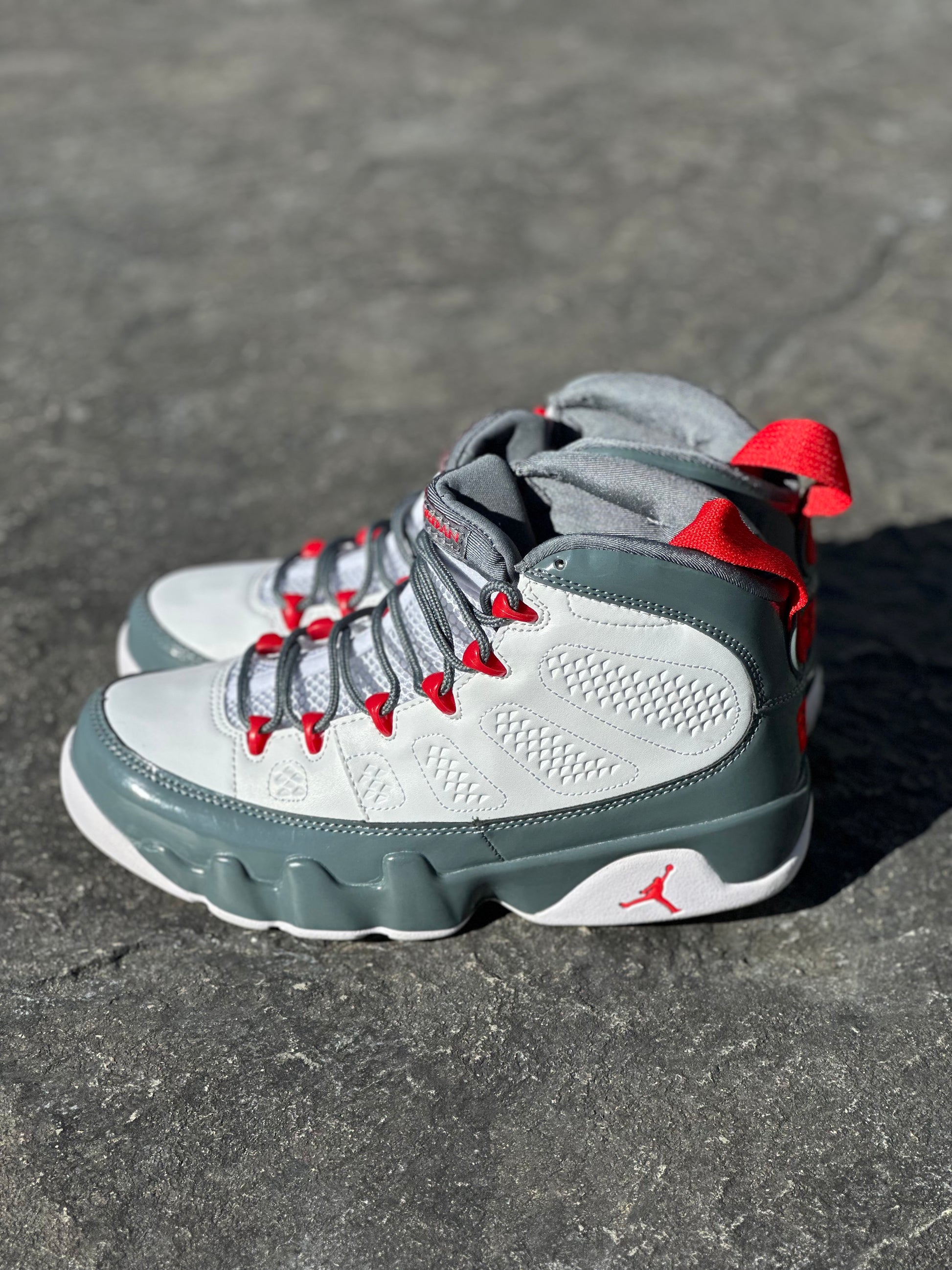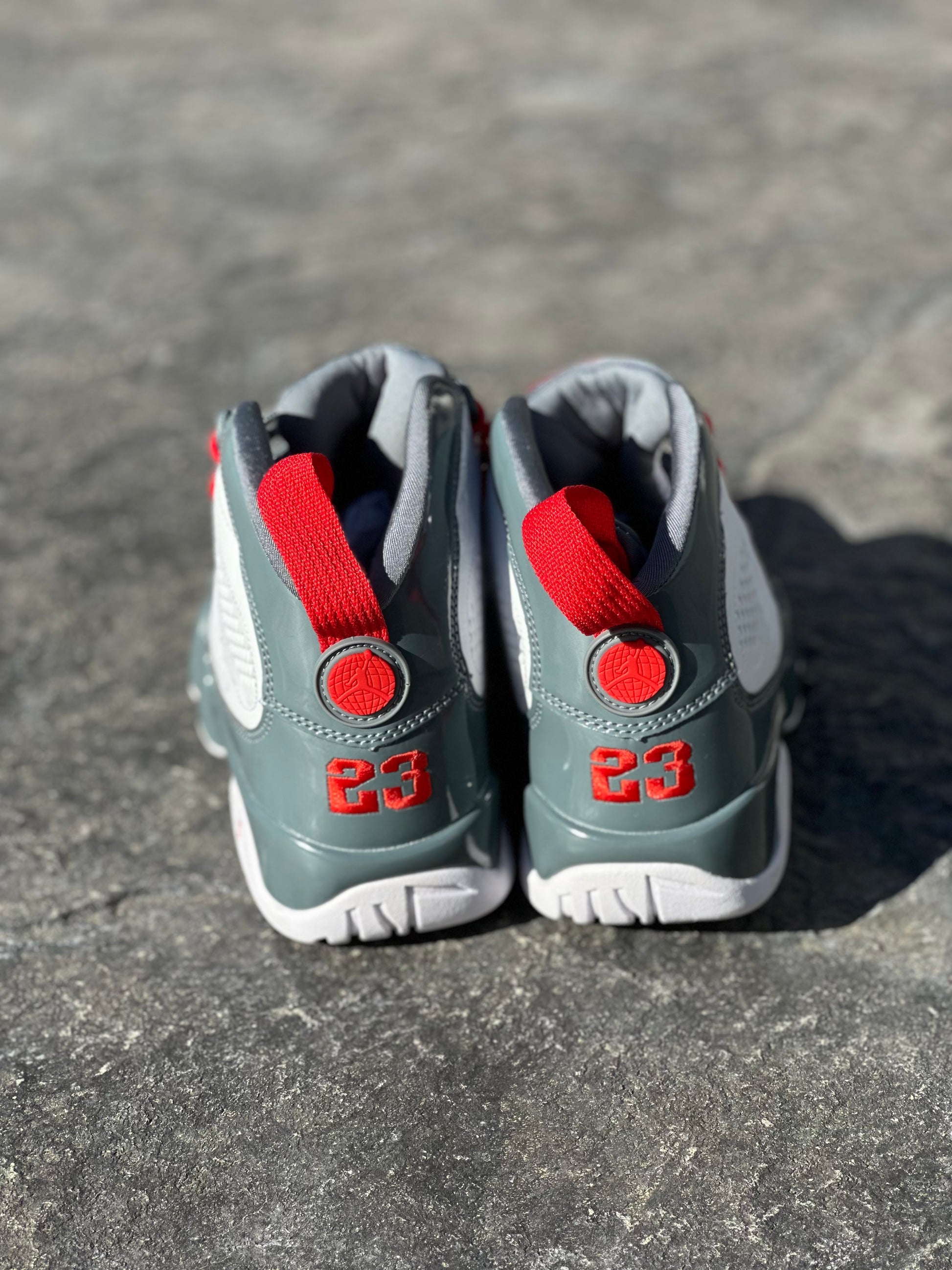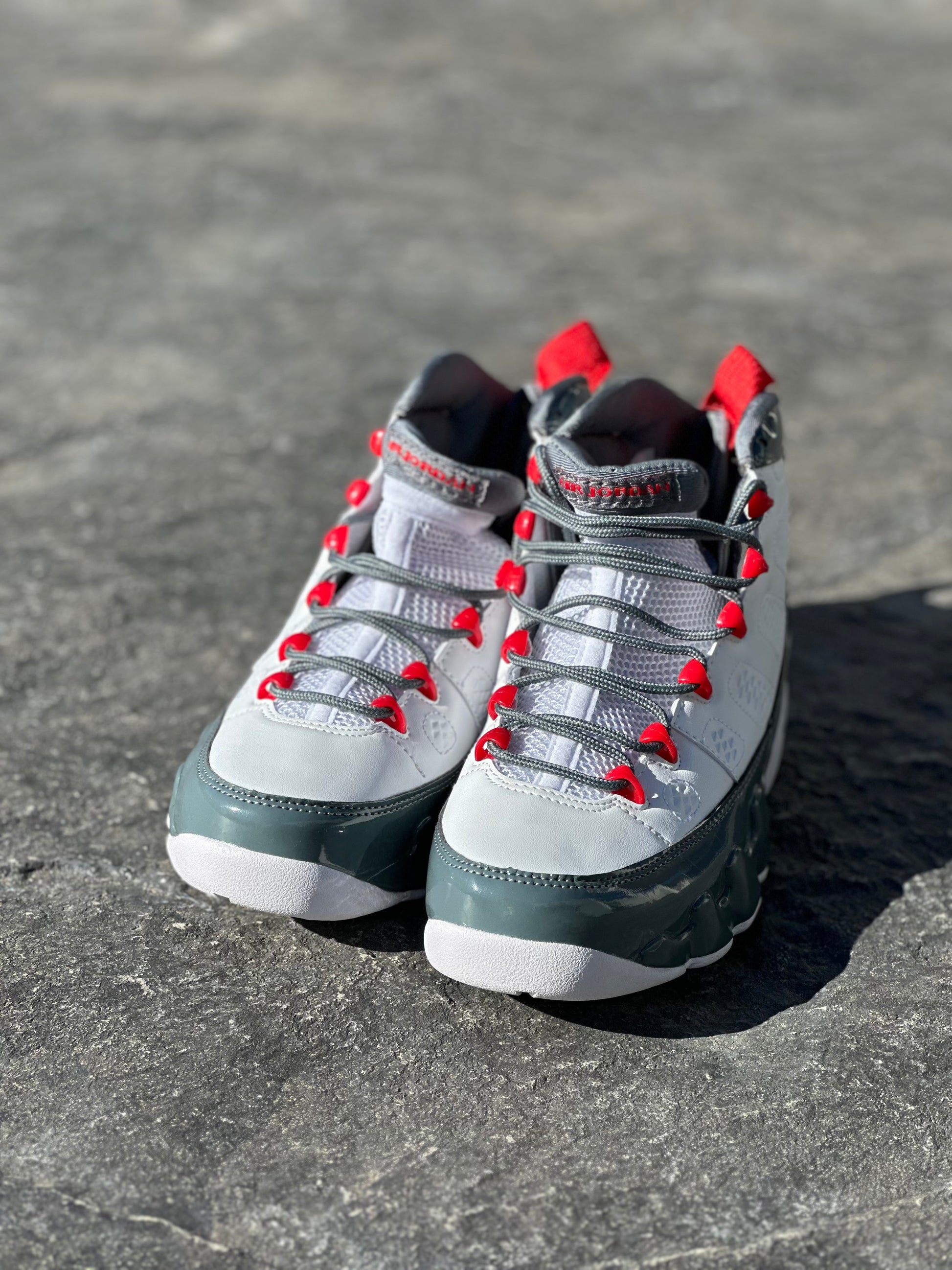 These high-top sneakers feature a clean combination of white and gray, creating a sharp and modern look. The bold red trims along the edges add a dynamic pop of color, while the matching gray shoelaces tie the design together for a cohesive, understated appeal. With a high-top silhouette for extra ankle support, these sneakers offer both style and comfort, making them a perfect choice for those looking to elevate their streetwear game with a vibrant yet balanced design.